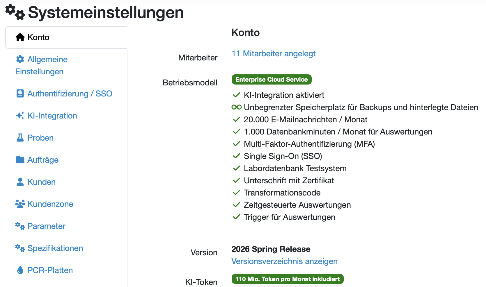 Über Navigationsleiste → Einstellungen (Zahnrad-Symbol) → Systemeinstellungen finden Sie globale Konfigurationen und Informationen.