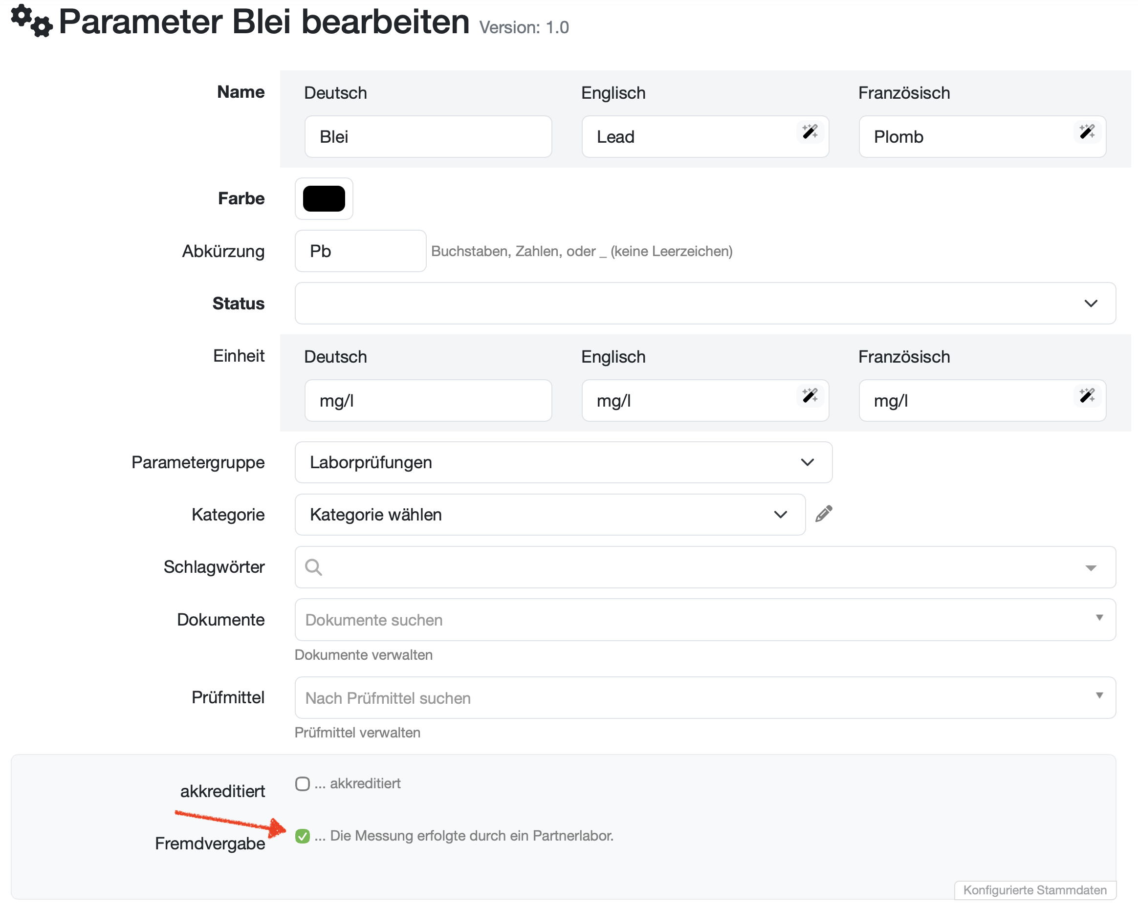 Dies gilt auch für andere Eigenschaften, zum Beispiel ob der Parameter akkreditiert ist.