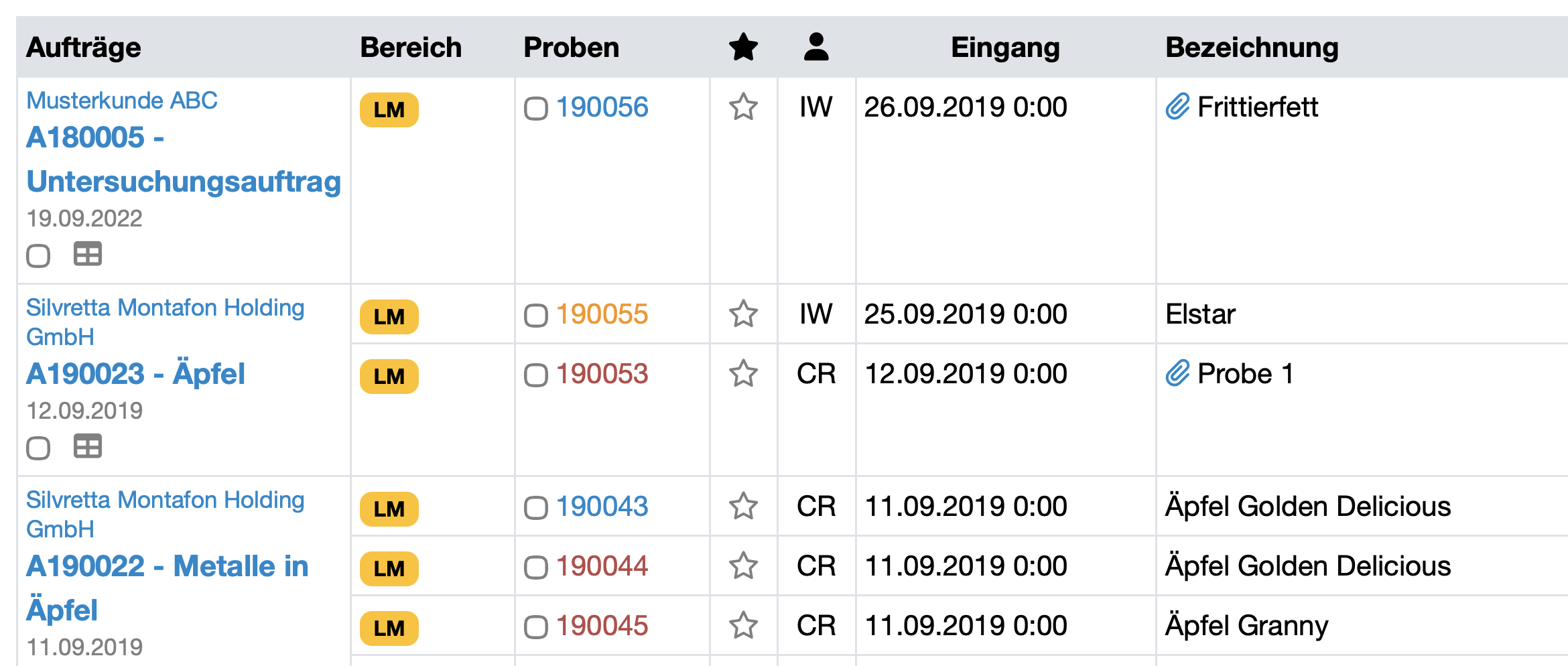 Die Nummern der Proben mit Sollwertabweichungen können farblich markiert werden (rot oder orange). So erkennen Sie Abweichungen auf einen Blick – ohne alle Werte einzeln prüfen zu müssen.