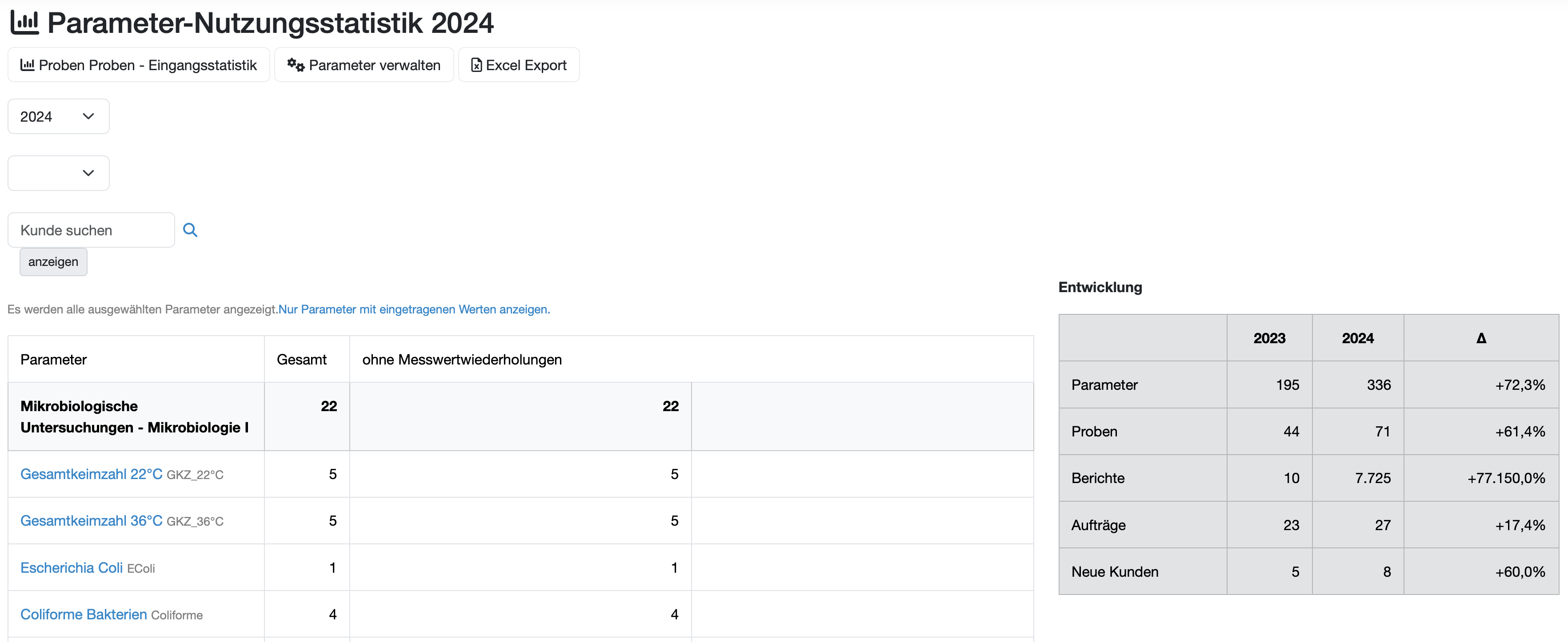 Die Parameter-Nutzungsstatistik ermöglicht die Analyse von Trends und Entwicklungen sowie die Identifizierung häufig und wenig genutzter Parameter über verschiedene Zeiträume hinweg.