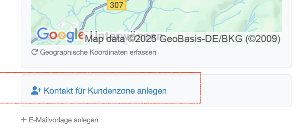 Falls der Kontakt bereits vorhanden ist, können Sie die Kundenzone auch nachträglich aktivieren: