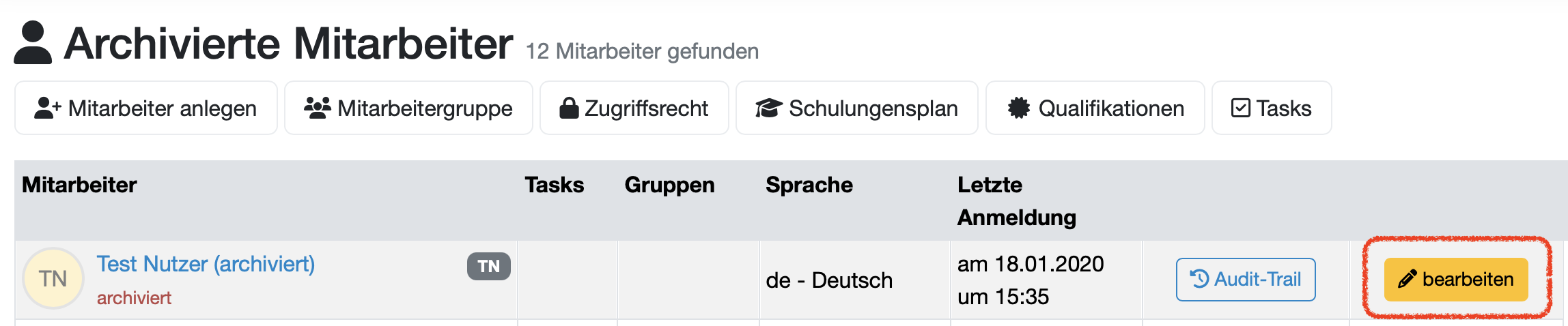Schritt 2: Archivierte Mitarbeiterliste öffnen