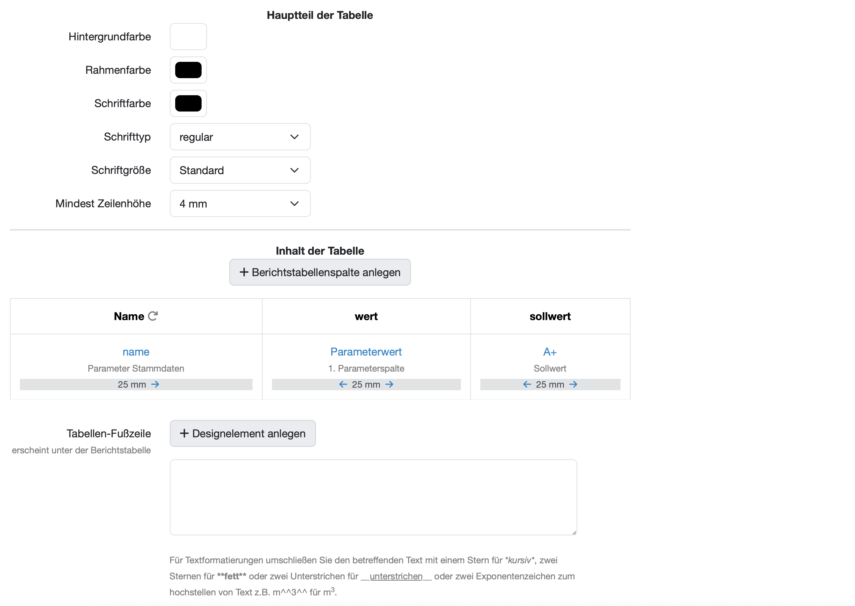 Am Beispiel der "Parametertabelle Sommer 2025" werden alle Einstellungsmöglichkeiten für Layout, Inhalt und Formatierung gezeigt.