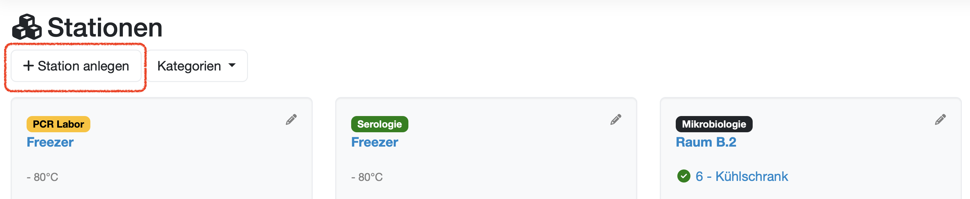 Sie finden die Stationen unter: Navigationsleiste → Proben → Stationen.