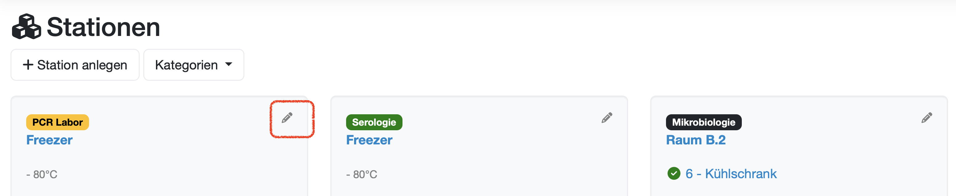 Kategorie (optional): Wählen Sie im Dropdown die Kategorie. Die Kategorie ermöglicht eine farbliche Gruppierung und strukturierte Organisation der Stationen.