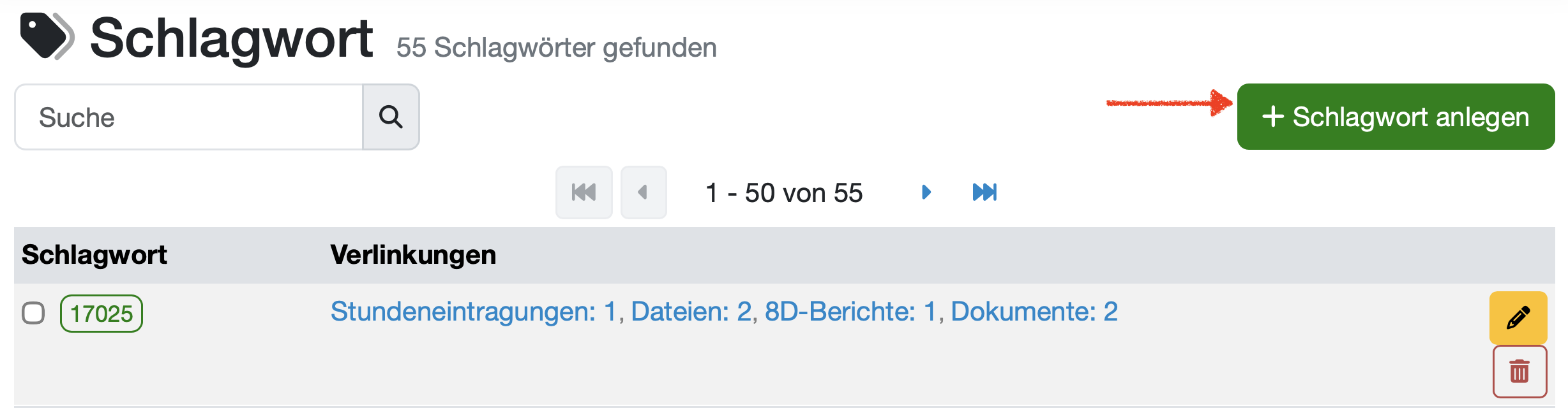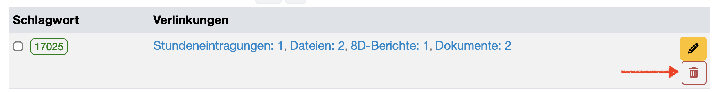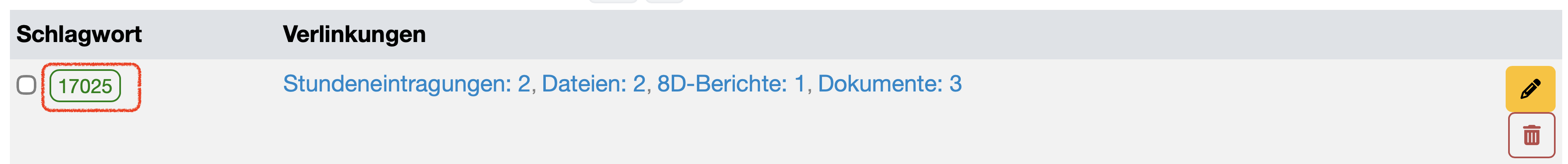 - Aktionsbuttons: Schlagwort bearbeiten / löschen