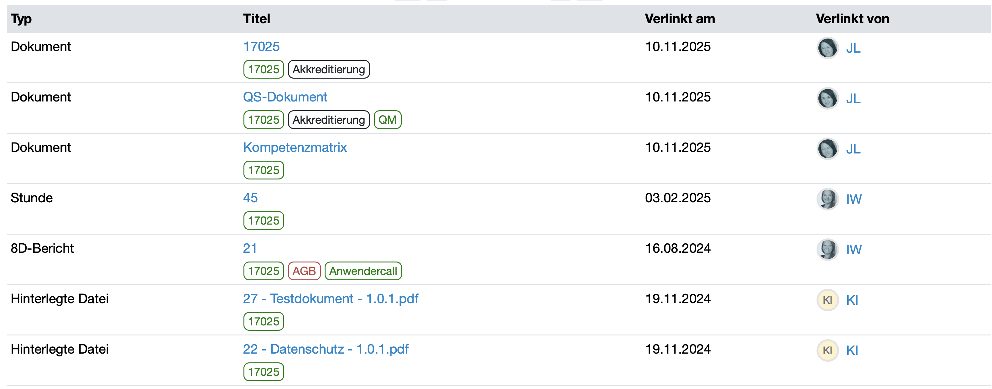 Besonders wichtig in regulierten Umgebungen: Sie können nachweisen, welche Dokumente, Schulungen und Prüfmittel zu einem bestimmten Standard oder Audit gehören.