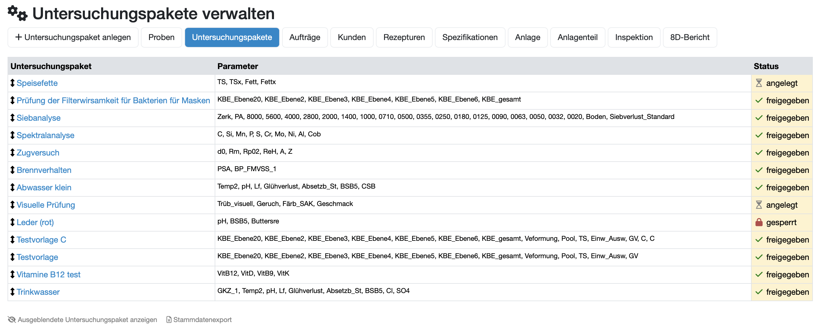 Sie finden die Verwaltung der Untersuchungspakete unter:
