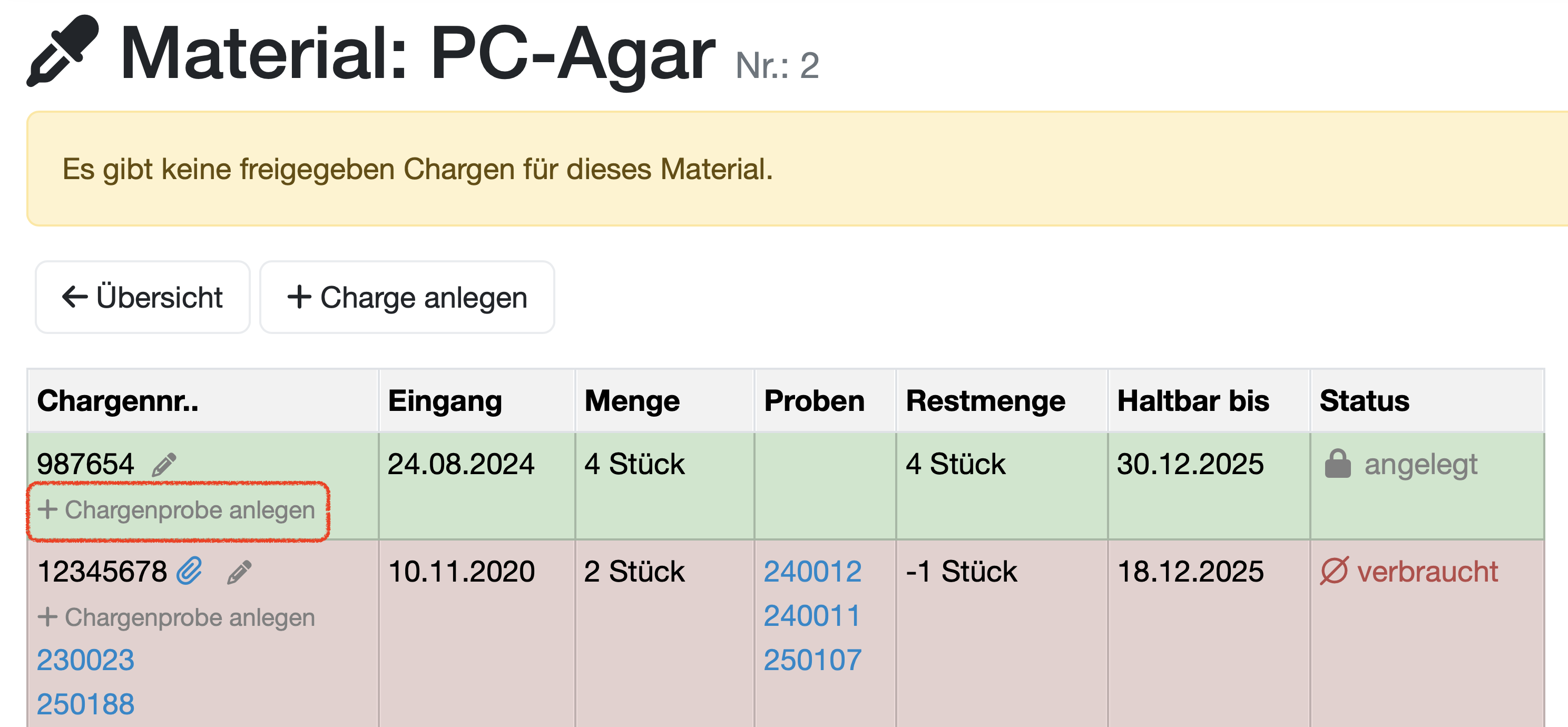 Chargenprobe anlegen