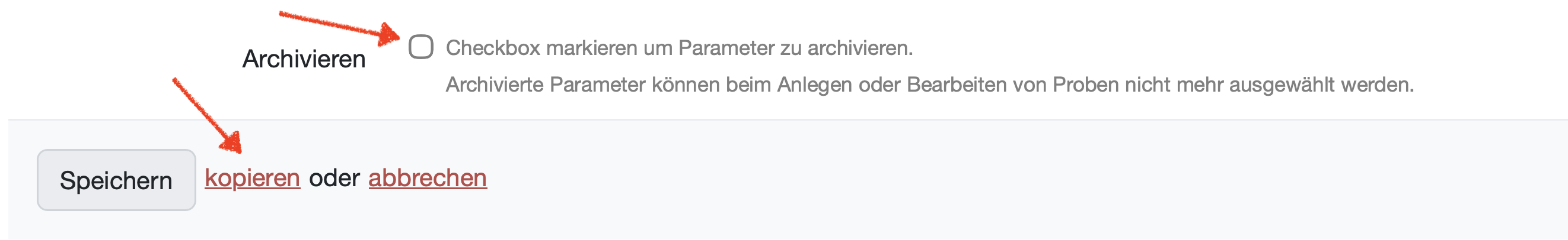 Die folgende Abb. zeigt die Optionen zum Archivieren und Kopieren am unteren Ende der Maske Parameter bearbeiten.