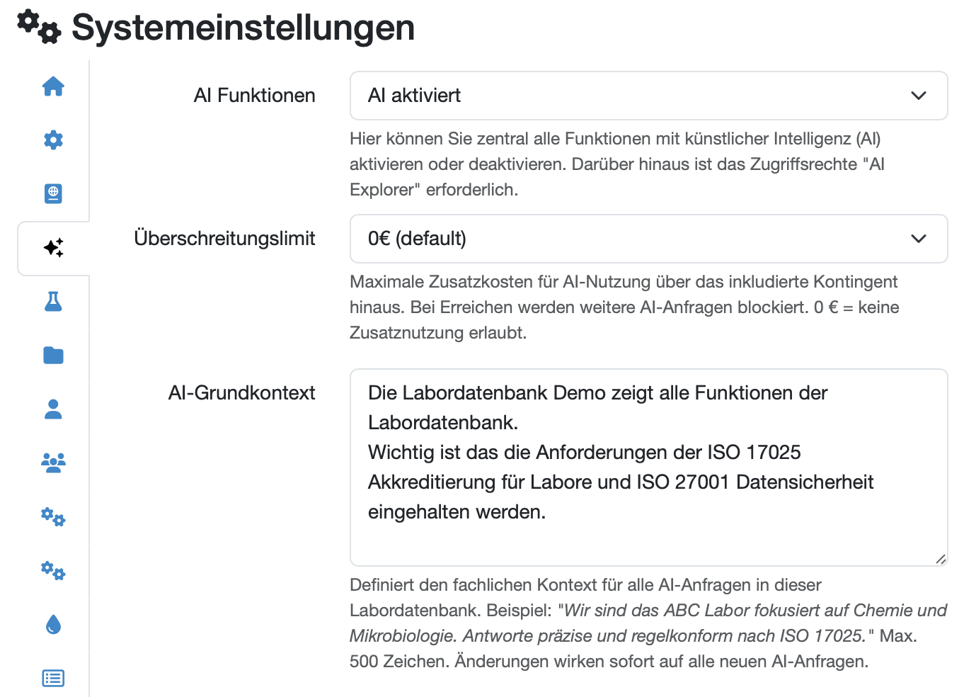 The Labordatenbank user license of €99 per user per month included AI integration and contains 10 million AI tokens per user.