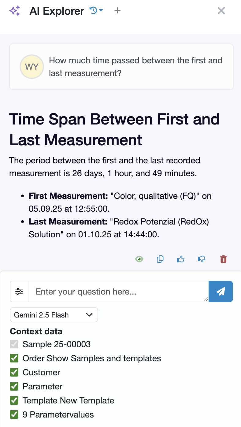 The laboratory database now offers an integrated AI Explorer that allows you to analyze and evaluate all data in the laboratory database using artificial intelligence (AI). The AI module can be activated via the system settings. To do this, access rights must be enabled for selected users.