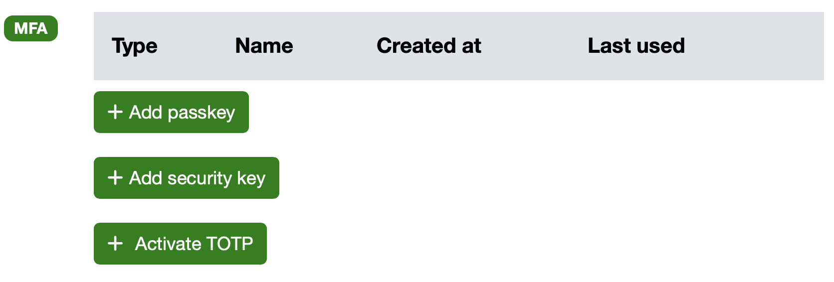 How is MFA set up to ensure secure access via authenticator app, security key or passkey?