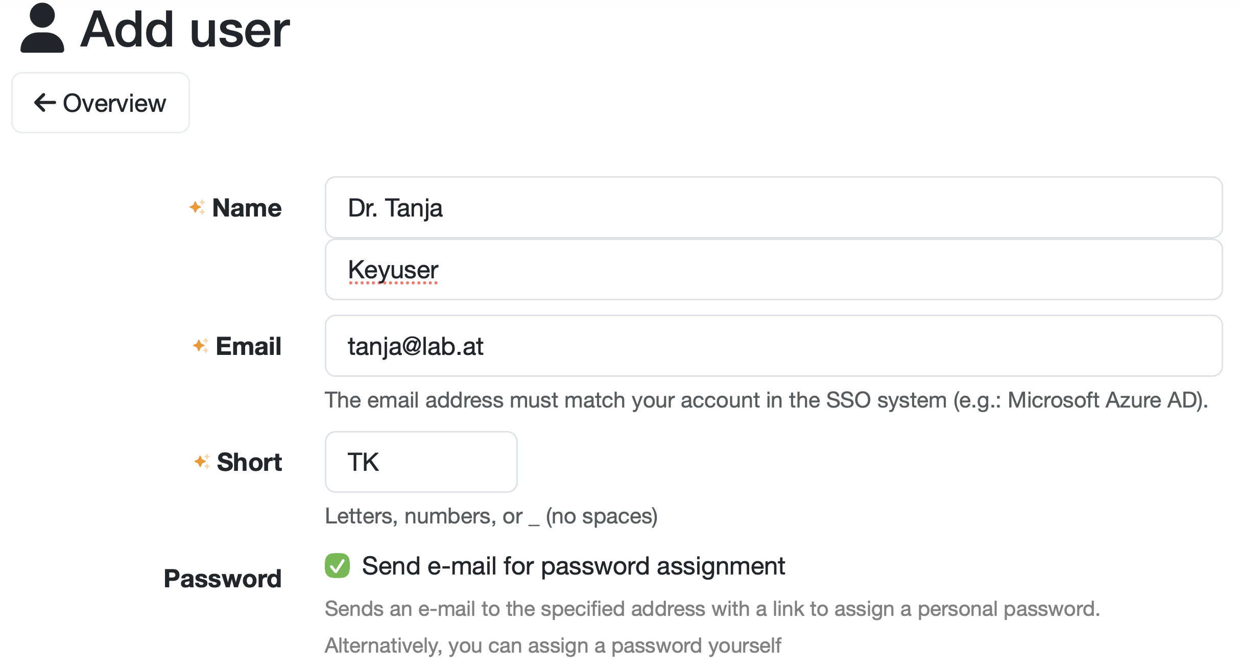 Important: Set up at least two key users with full access rights so that password resets and rights assignments can be handled internally.