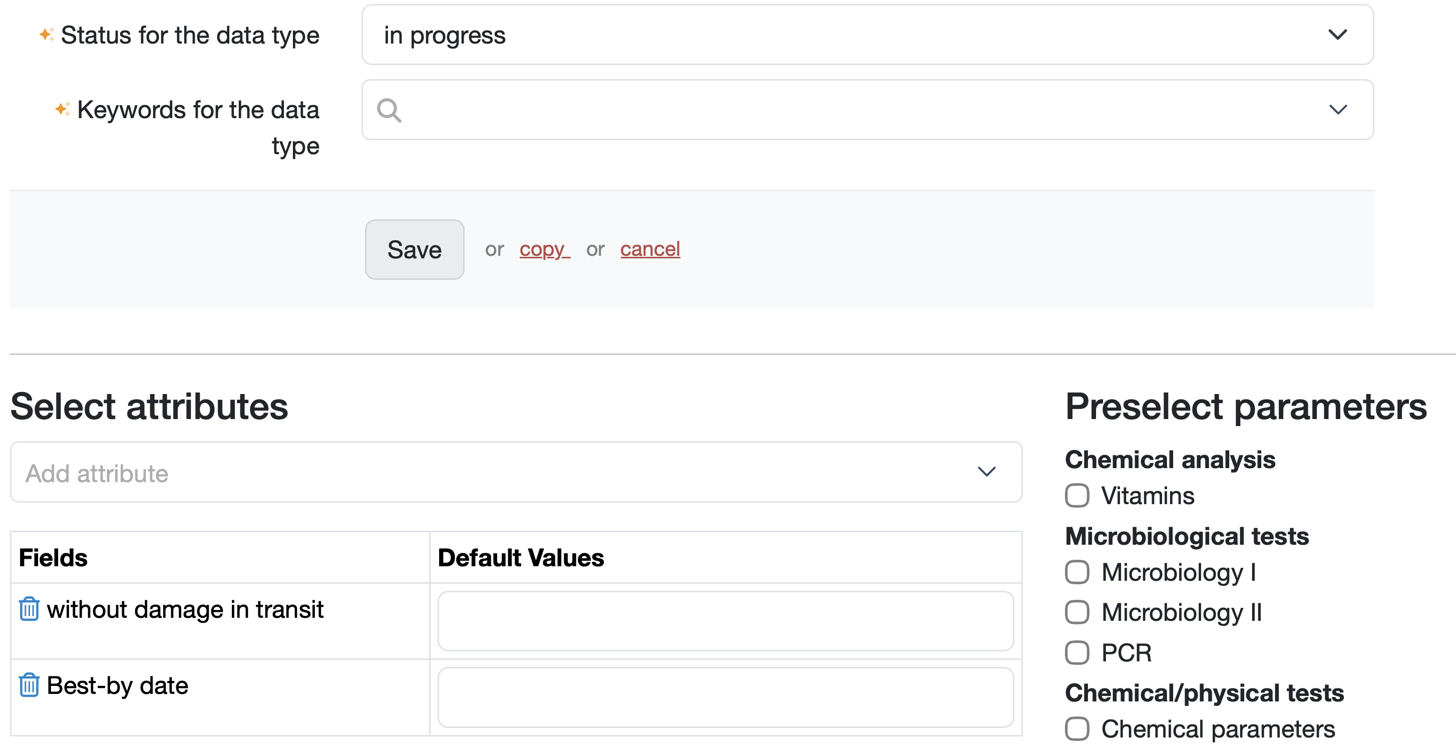 Create sample templates for specific sample types (e.g. food, water) and pre-select the relevant master data fields and parameters in those templates. This way, for a food sample e.g. the best before date automatically appears as a required field, but not for a water sample.
