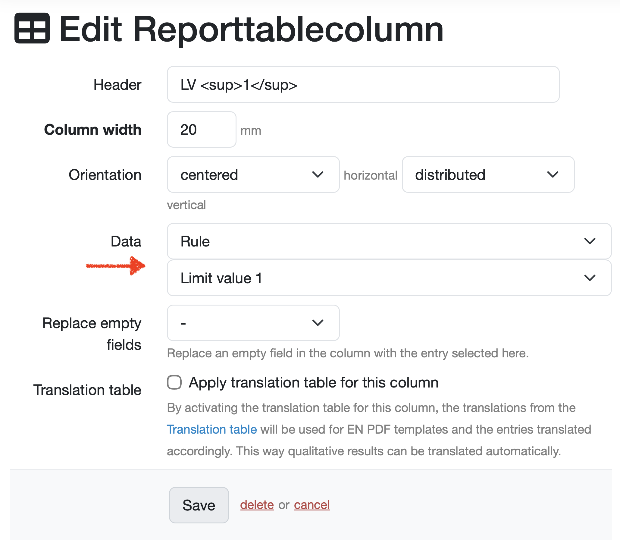 3.1. Select the data Rule, to reflect the configured set value (Limit value 1 in this example) of the respective parameter.