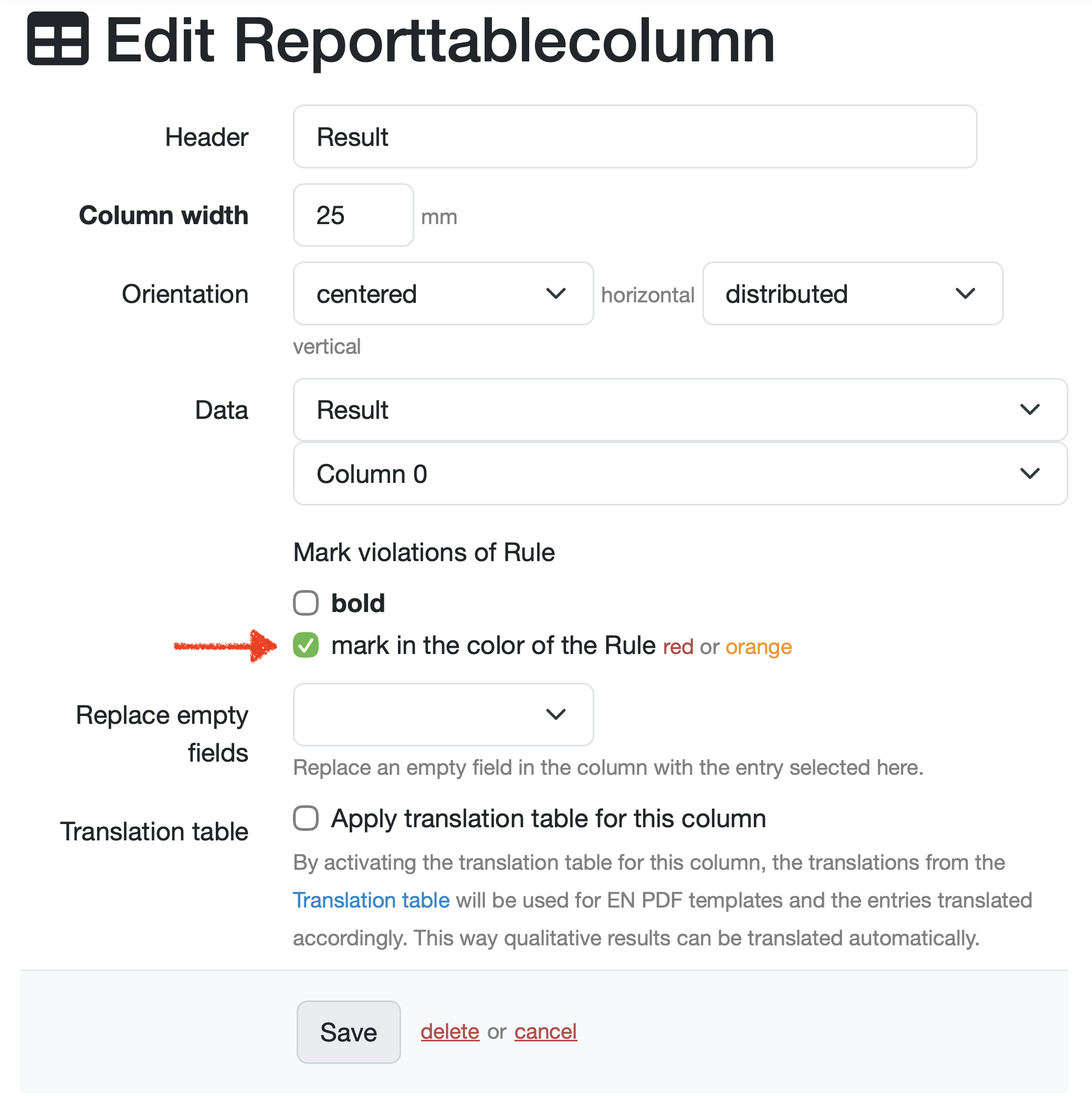 3.2. If you want to highlight target value violations in results, select either the Mark in the color of the rule red or orange or bold check box for the results column.