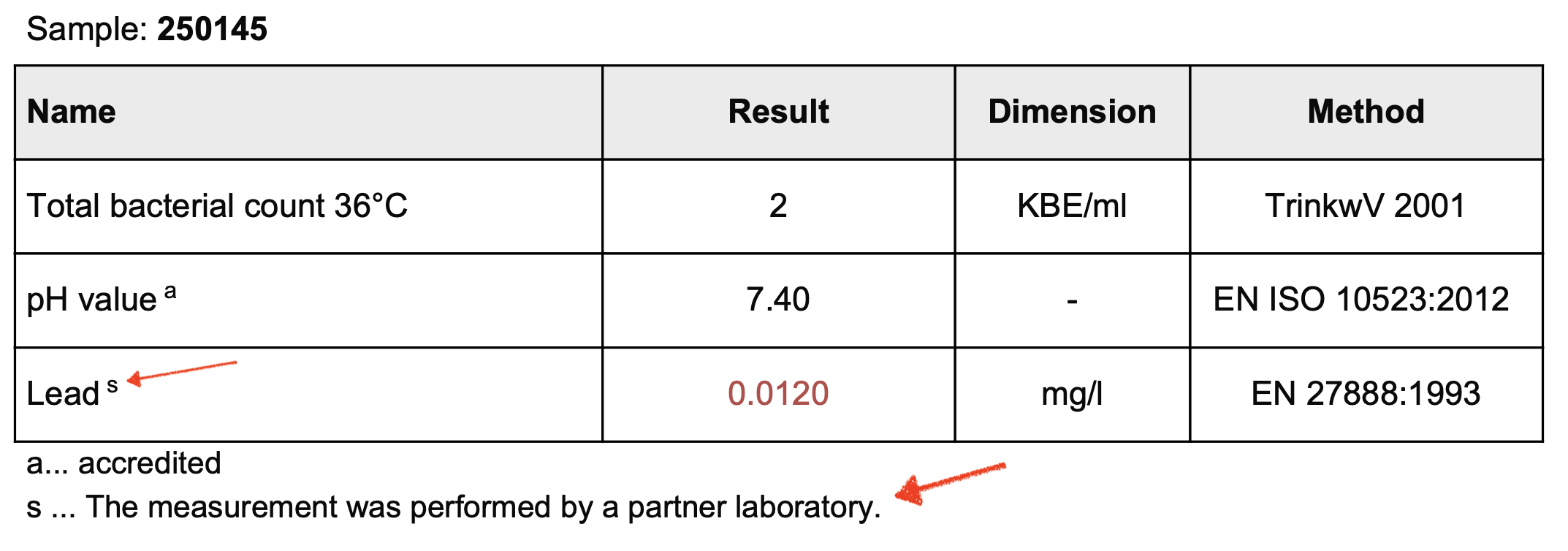 The parameter is marked accordingly on your test report. The legend text s ... The measurement was performed by a partner laboratory. is automatically displayed as soon as a parameter meets the criterion subcontracted.