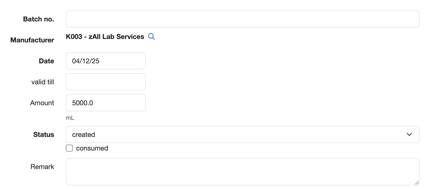 Here you can add master data for the respective batch, such as:
