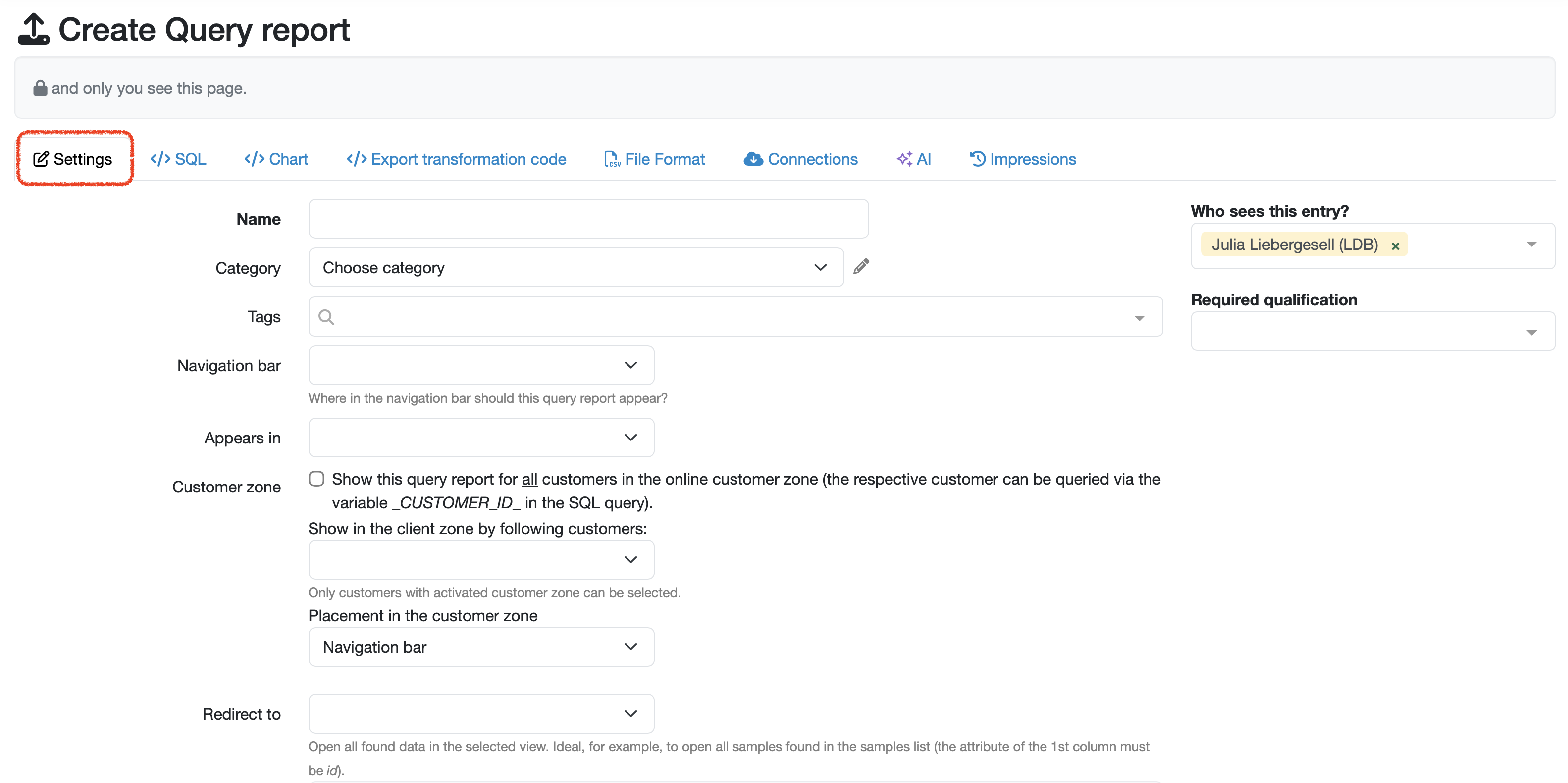 Who sees this entry: On the right-hand side of the page, you can set who can see the query report.