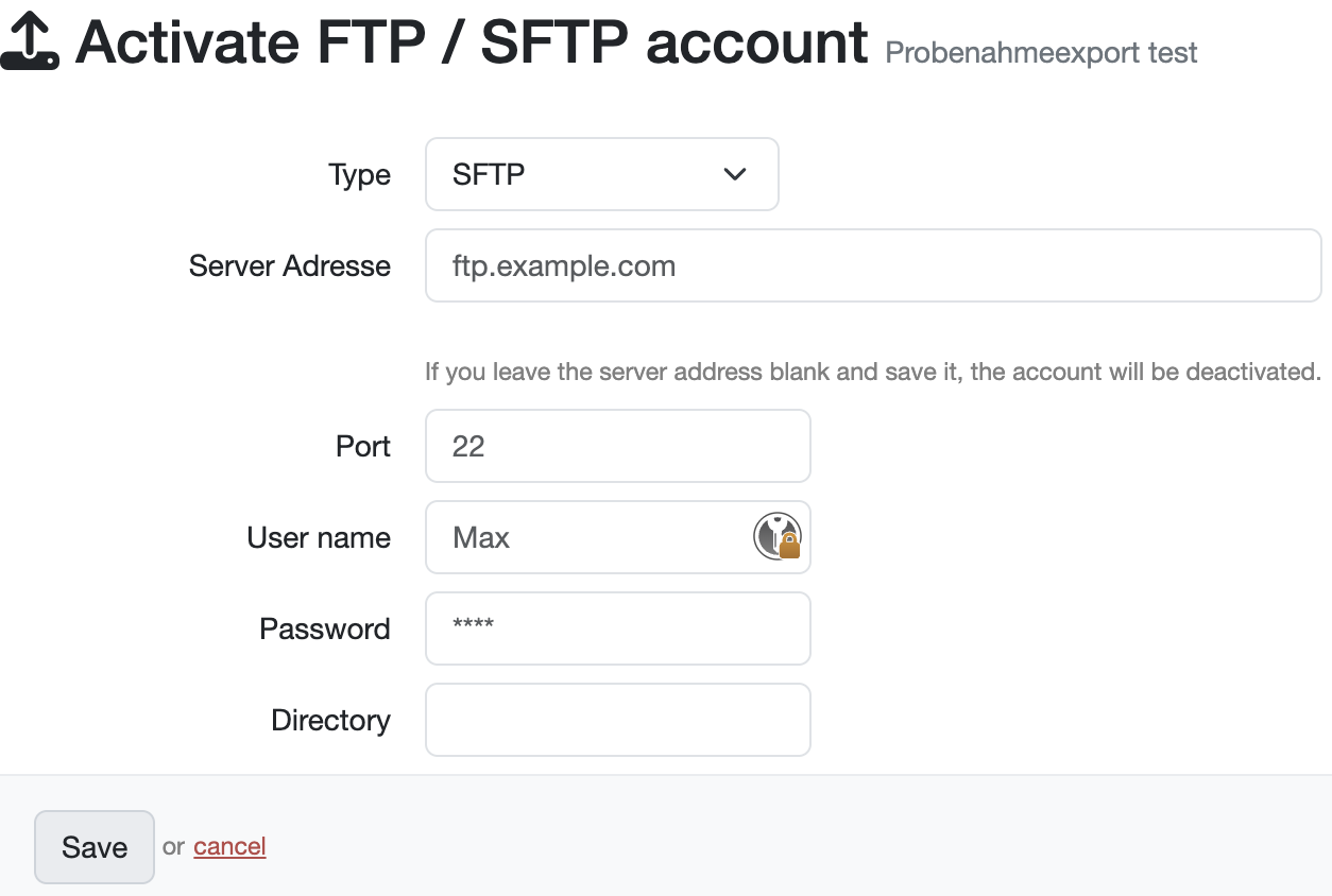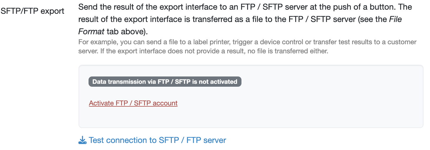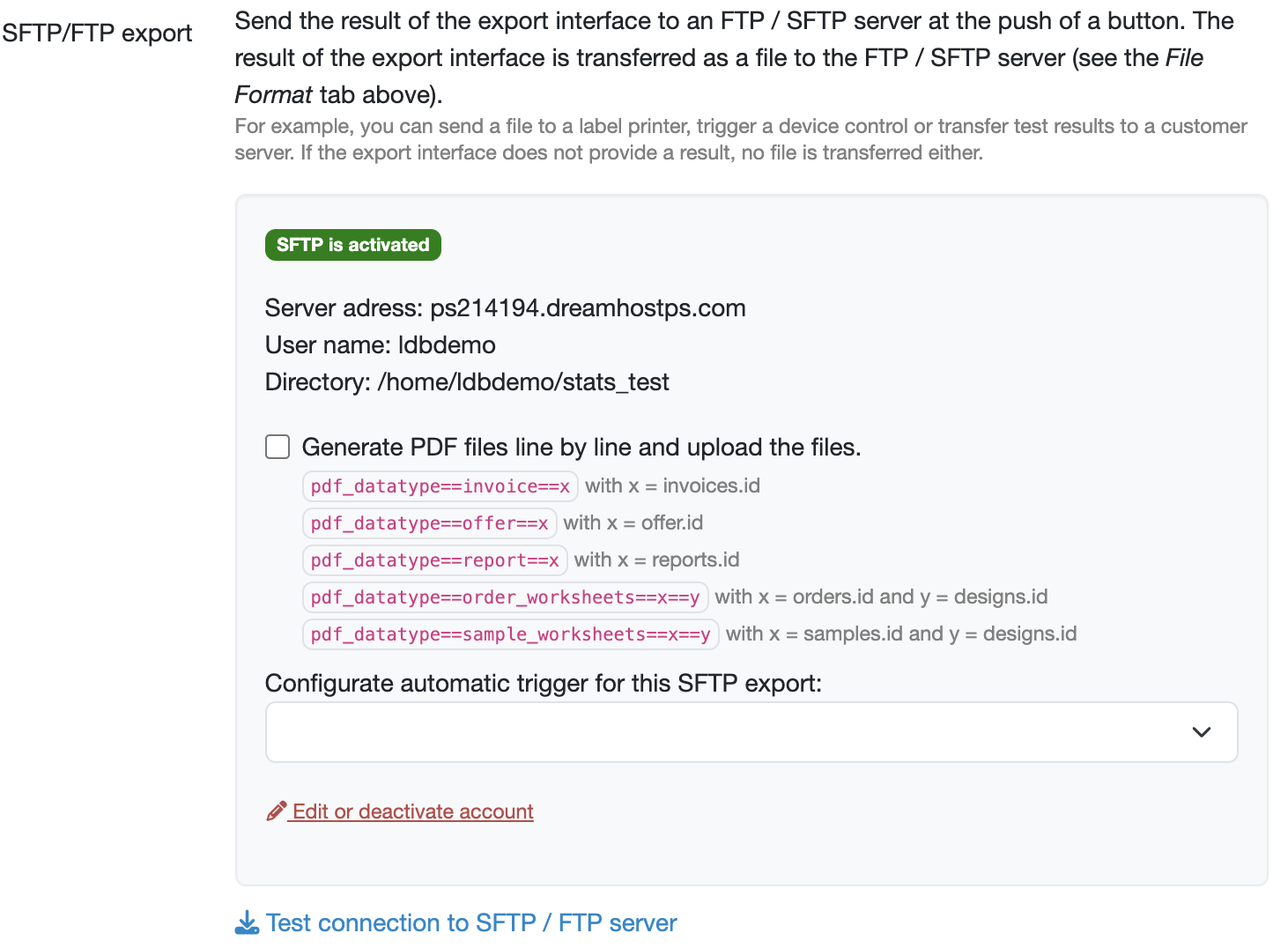 Click on “Test SFTP/FTP connection” to check the connection to the server.