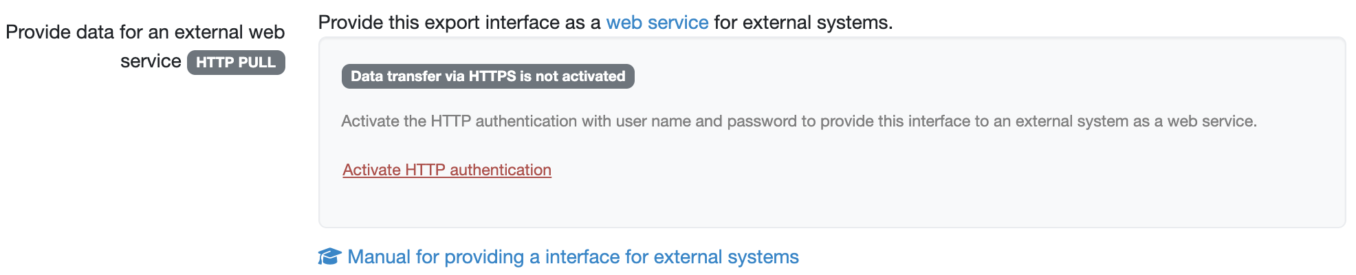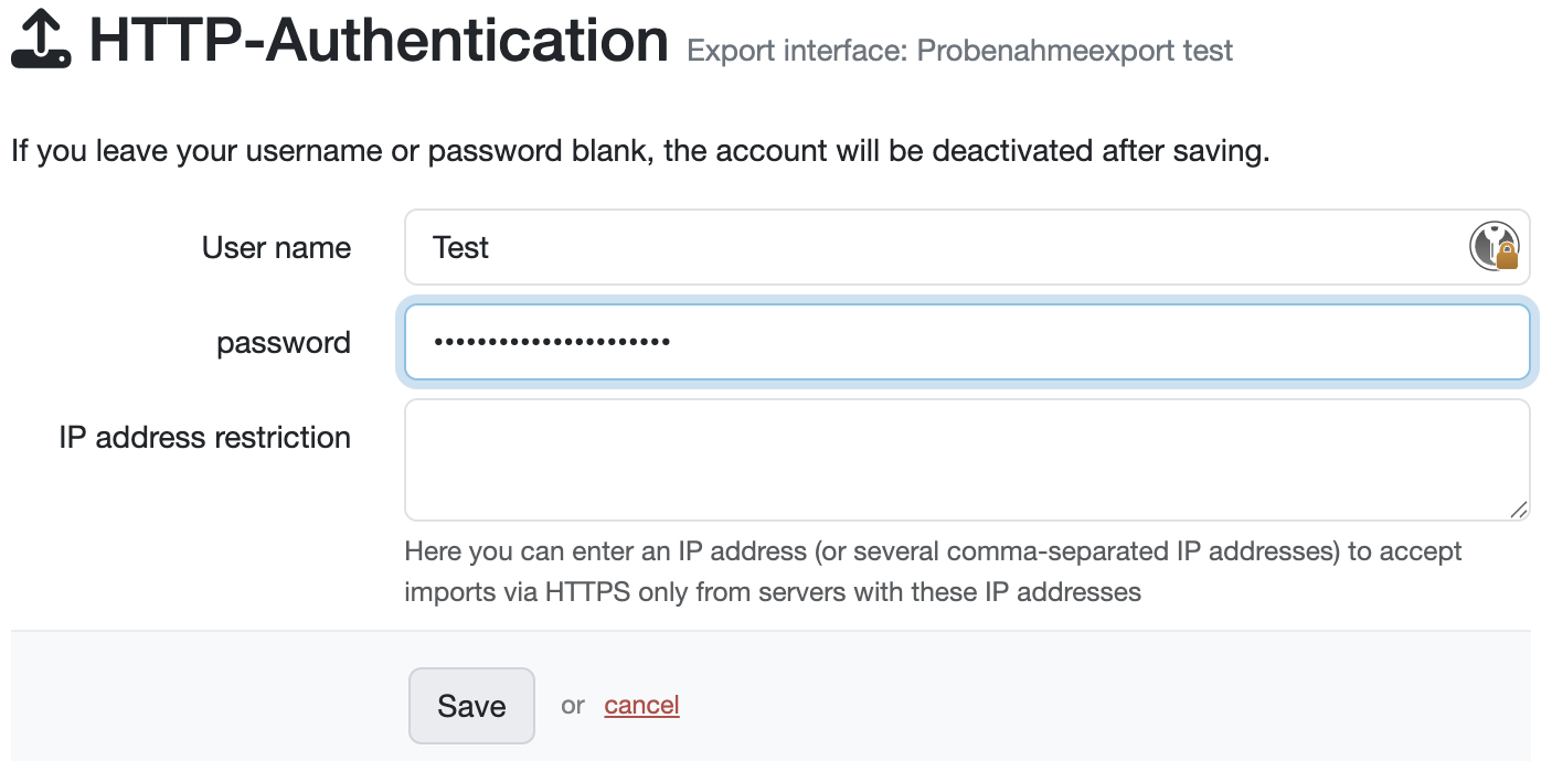 To make files available via HTTPS PULL, select the “Enable HTTP authentication” button and define a user name and password in the following window.