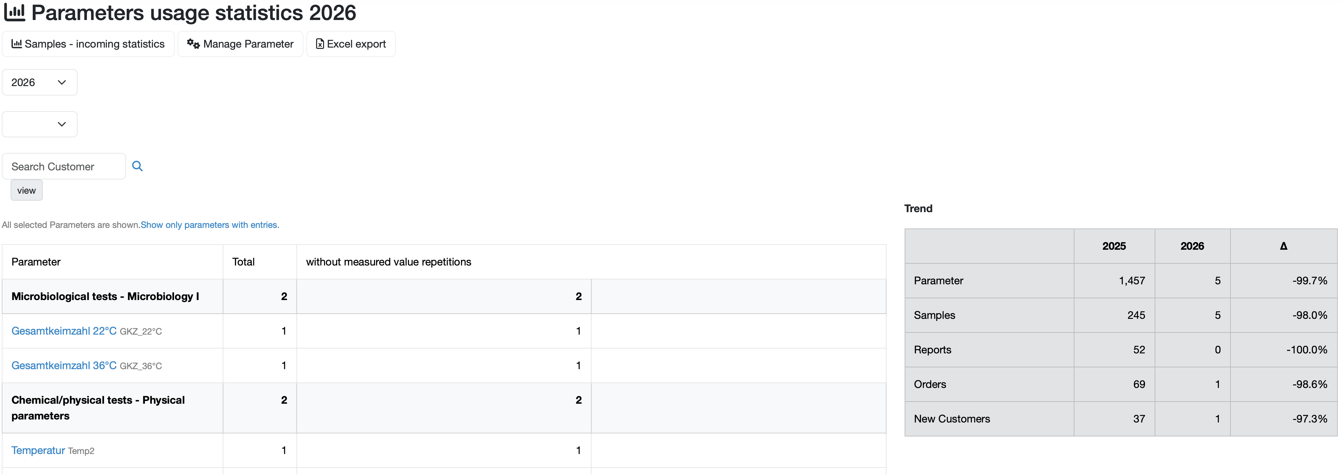 The parameter usage statistics enable you to analyze trends and developments and identify frequently and rarely used parameters over different periods of time.