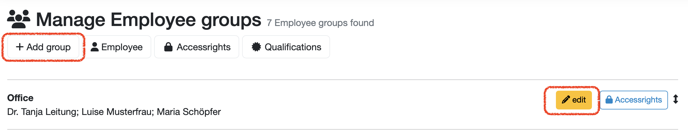 The option to delete an employee group is described further down in this guide, under “Delete employee group”.