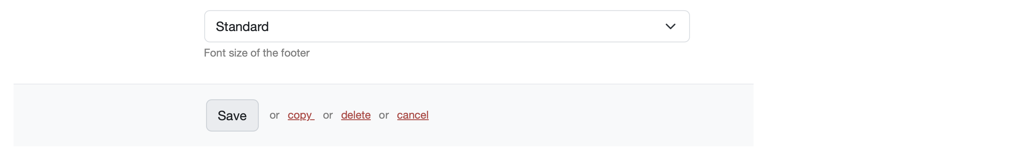 - Text formatting: For text formatting, enclose the relevant text as described below the text field for the footer text.