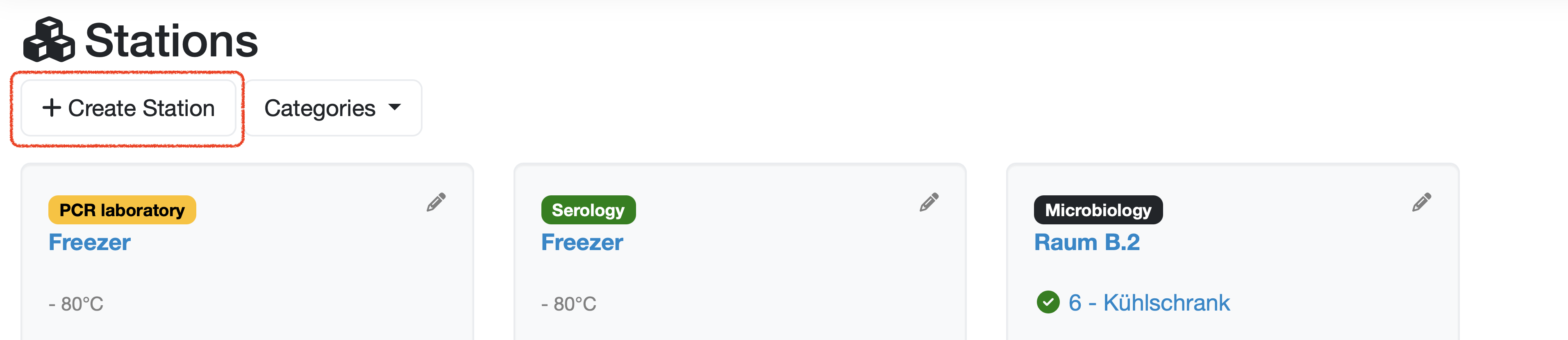 Under the menu heading, you will find the button for creating a new station in the left section of the page.