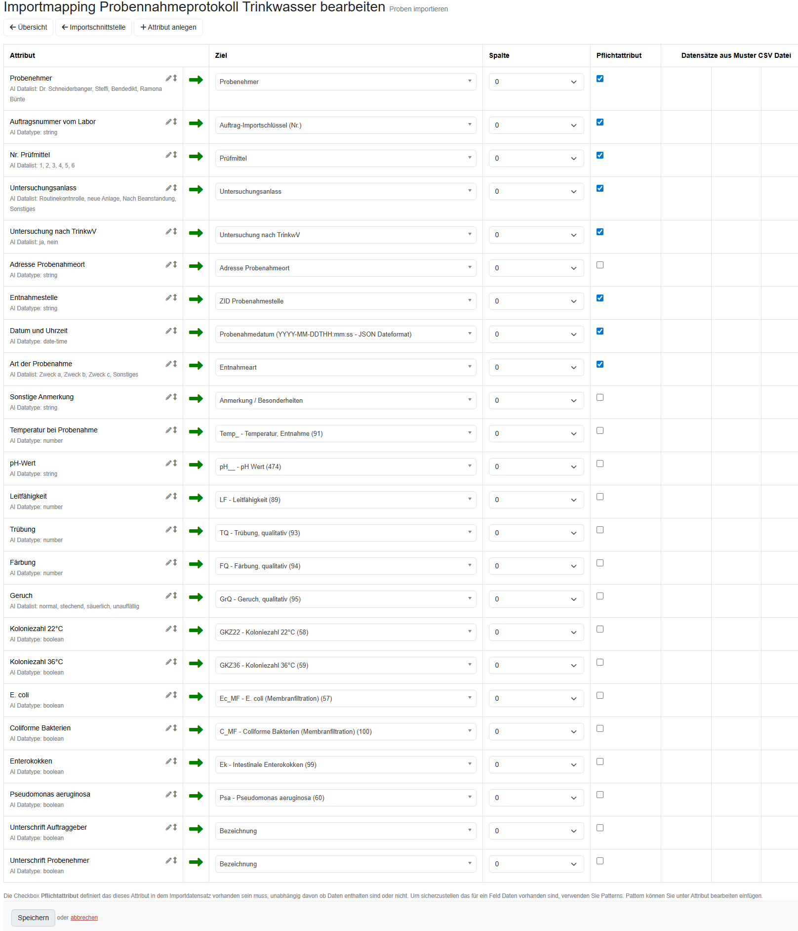 The import mapping "Edit Drinking Water Sampling Protocol" shows the practical application: