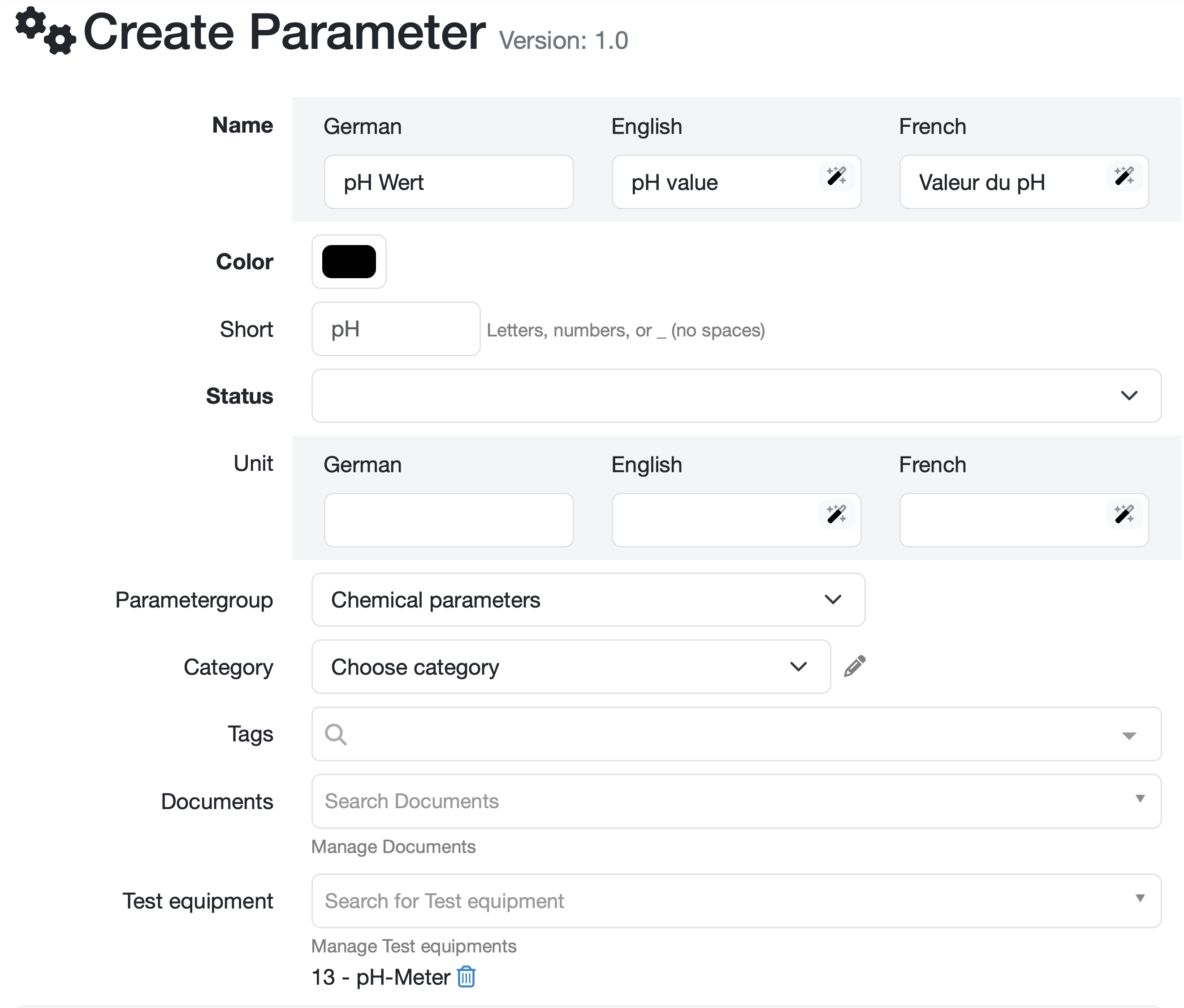 Additional master data: Depending on the configuration of your laboratory database, there are additional master data fields that can be filled in. (SOP number, test standard, accredited ... )