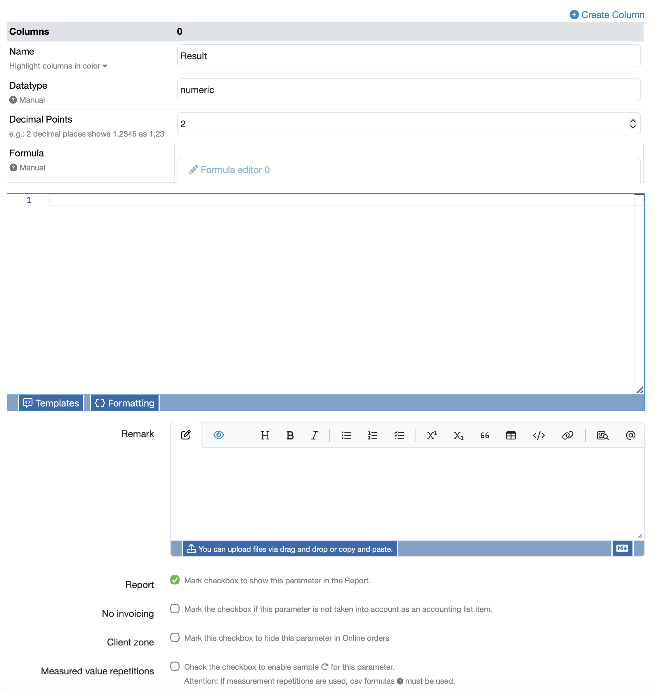Formula: If necessary, store calculation formulas for automatic calculations, e.g., mean value calculation or conversions.