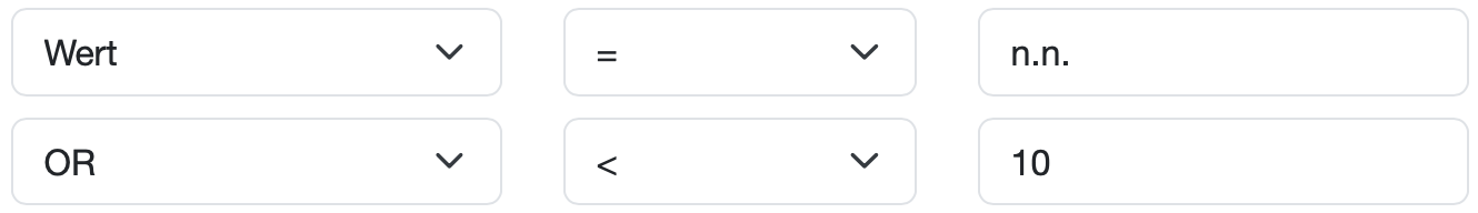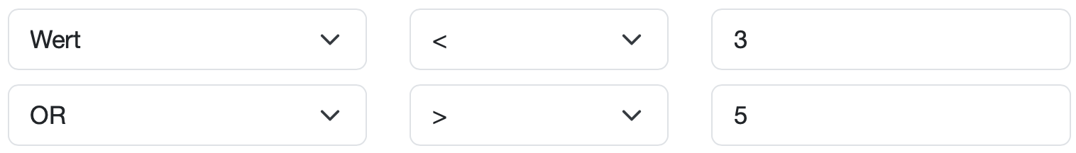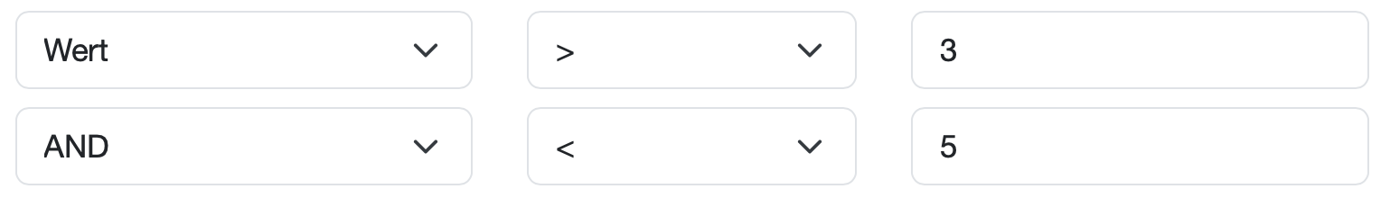 =, <, >, ≤, ≥, !=) in the second dropdown menu.AND or OR as the connector.