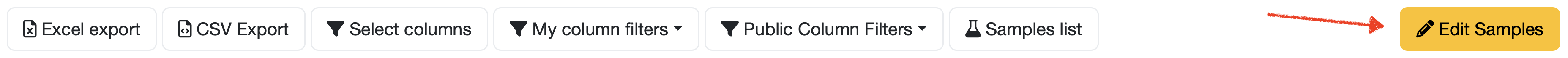 Click the Edit Samples button (orange, top right) to access the view for bulk editing of all samples displayed in the Results table.