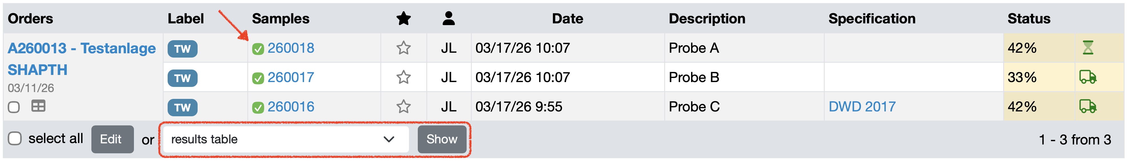 | Date | Displays the receipt date of the sample. The column is sortable. |