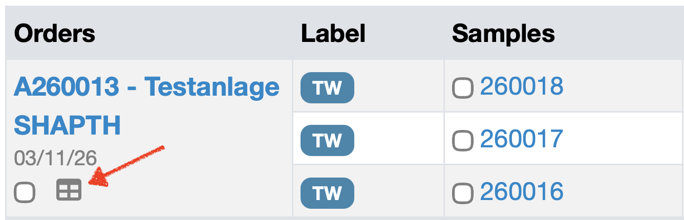 | Sample | Displays the sample number as a blue-highlighted link. Clicking it opens the detail view of the sample. The column is sortable. |